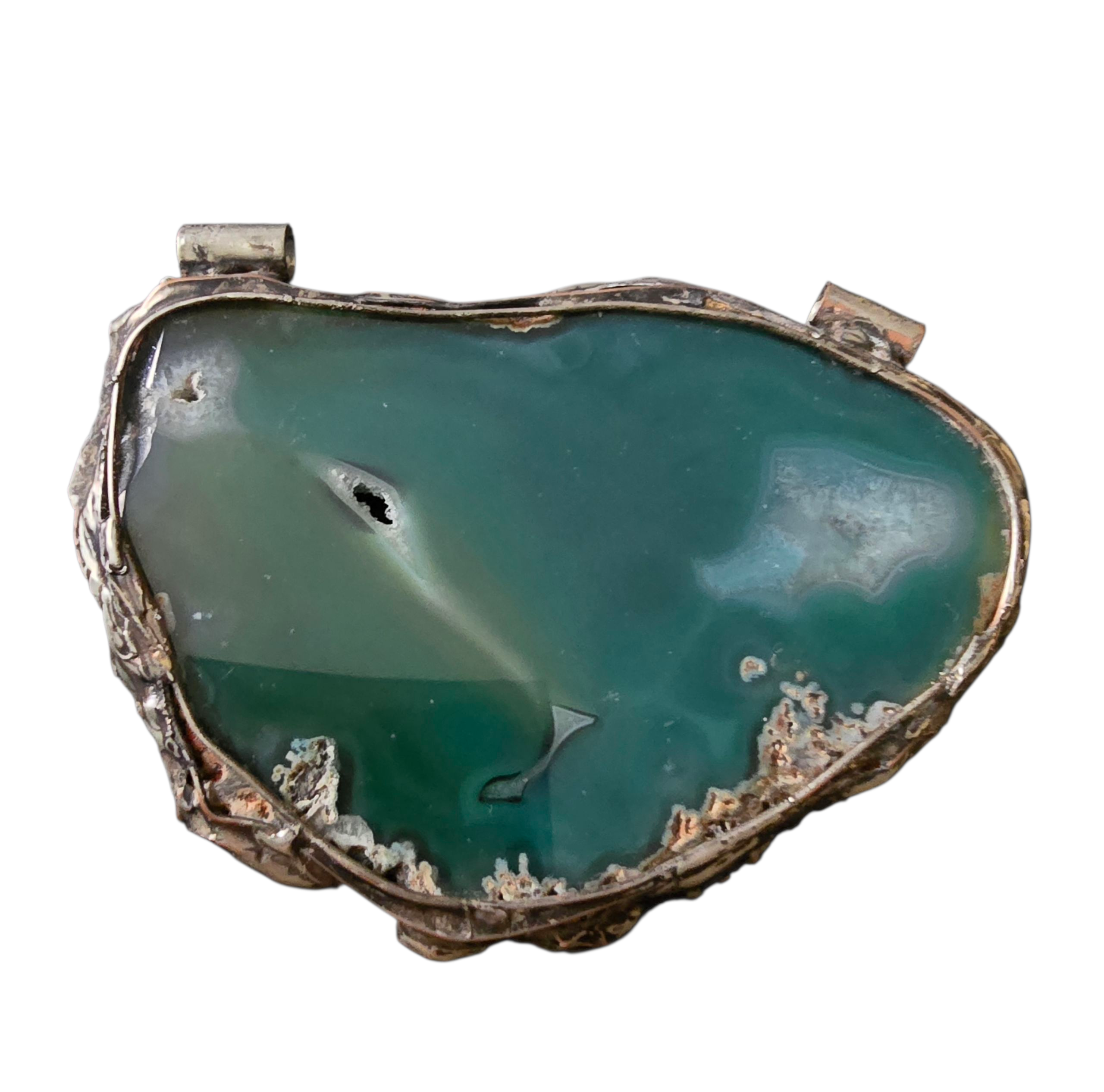 W mojej pracowni powstał okazały, ręcznie wykonany skarb który kryje w swoim sercu niepowtarzalny efekt To wisior agat, którego wzory przypominają miniaturowy krajobraz zaklęty w kamieniu. Oprawiony z artystyczną precyzją w miedzianą konstrukcję pokrytą bezpieczną, bezołowiową cyną, emanuje surowym pięknem i unikatowym charakterem.