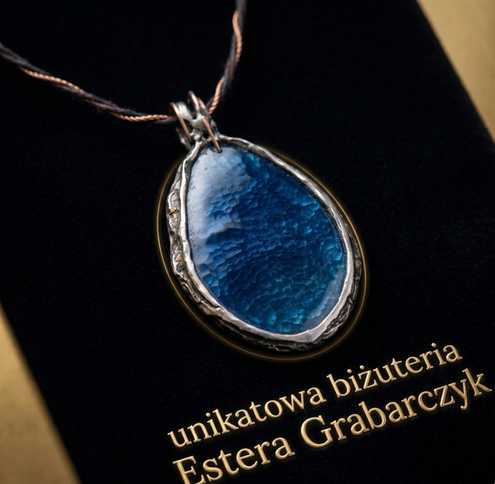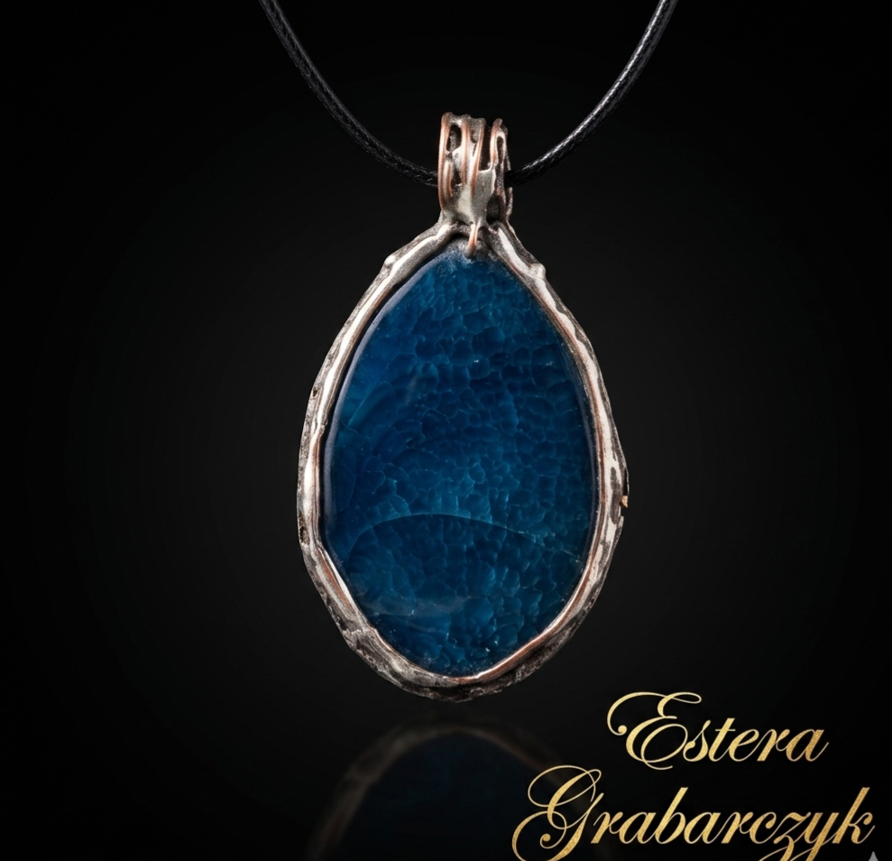 Naszyjnik Niebieski Agat – Unikatowa Biżuteria Artystyczna Estera Grabarczyk